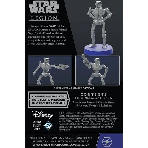 Upgrade your tactics with the Super Tactical Droid Commander Expansion for Star Wars: Legion! An upgrade over the T-series Tactical Droid, the Separatist Alliance often calls upon these ruthless droids to serve as generals in their armies. Relying on cutthroat tactics, they will stop at nothing to accomplish their objectives.
