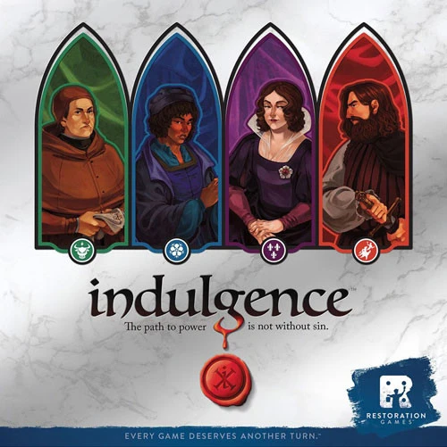 Indulgence is our restoration of 1982’s Dragonmaster and 1966’s Coup d’Etat, a card game where you can follow the leader’s rules to avoid paying a penalty or try to undermine them for a big reward. This trick-taking game let the players revel in ambition.