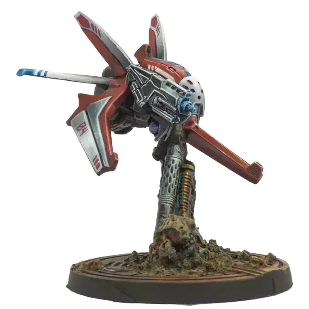 This blister includes an injected thermoplastic miniature of the Meteor Zond. Thanks to its Combat Jump Special Skill you can deploy the Meteor Zond in the middle of enemy lines and expand your hacking area with its Repeater with little risk.